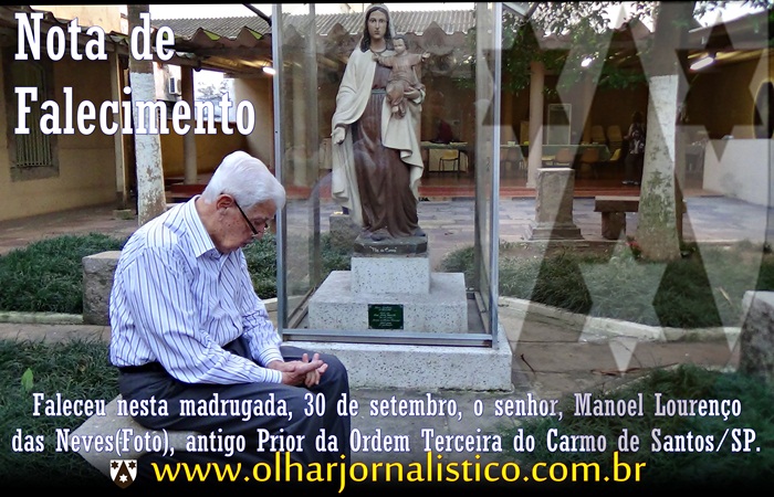 Faleceu nesta madrugado, 30 de setembro, o senhor, Manoel Lourenço das Neves (Foto), Antigo Prior deste Sodalício.