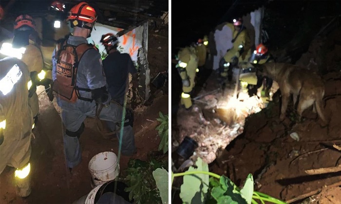 Três pessoas morreram após deslizamento de terra em Embu das Artes: região sofre com fortes chuvas desde sábado Foto: Reprodução/Corpo de Bombeiros