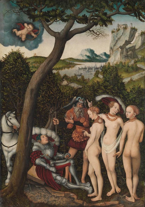 Páris escolhe a deus mais bela, em tela do alemão Lucas Cranach: conflito criado por Éris, a discórdia Foto: Reprodução/Meropolitan Museum