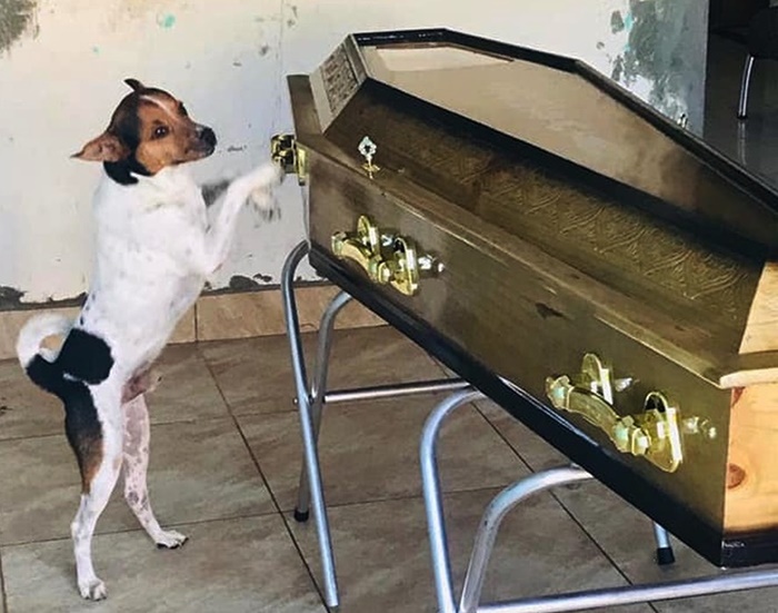 "O dia hoje amanheceu triste com o falecimento de dona Luzinete, Testemunha de Jeová, como era conhecida, pessoa muito querida. E o que mais estou impressionado é com o desespero desse cachorro da família, parecendo que estava entendendo que a dona estava falecida, chorando como se fosse uma pessoa quando perde um ente querido, não queria deixar ninguém chegar próximo ao caixão", registrou o amigo da família nas redes sociais. Fonte: https://g1.globo.com