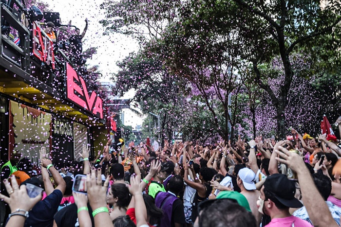 Bloco Beleza Rara com a Banda Eva na avenida Faria Lima, zona oeste de São Paulo; Carnaval é uma celebração mundana, mas com fortes conexões religiosas - Rafaela Araújo - 23.fev.25/Folhapress