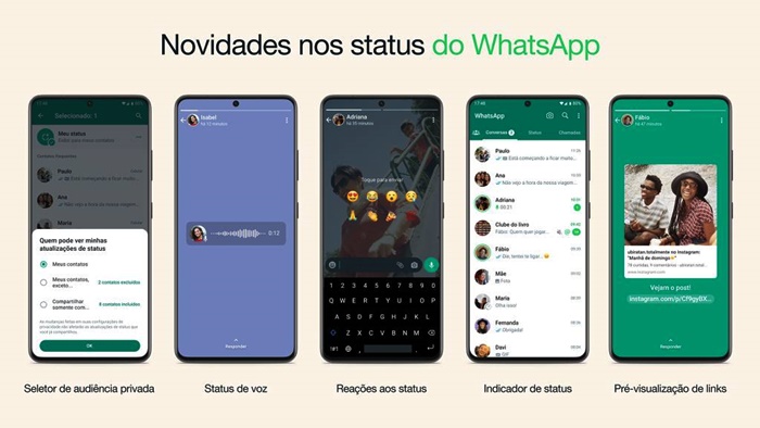 Na atualização, o usuário poderá controlar quem pode ver os status, reagir com emojis e compartilhar mensagens de voz.